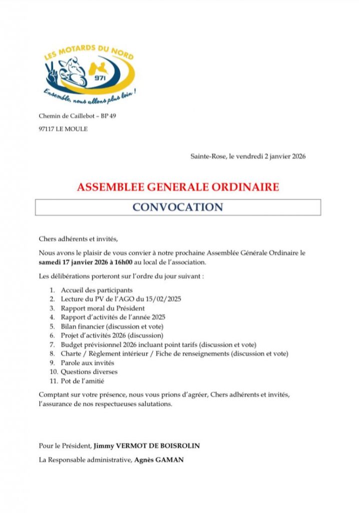 Les Motards du Nord vous informe de l’ouverture de la campagne d’adhésion 2026. Clôture au 28 février 2026.