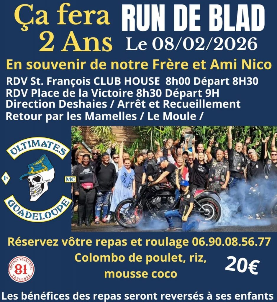 - Dimanche 25 janvier 2026 : Messe annuelle avec les Motards à la Paroisse du Christ roi, Petit-Canal + Balade